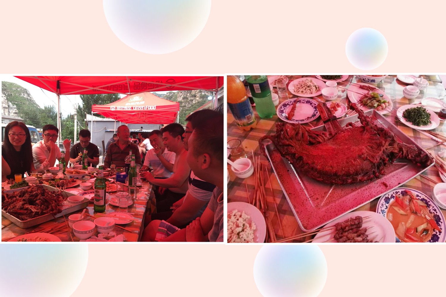 劳累了一天以后,回到住宿的农家乐,拖着疲惫的身体想要睡觉,却挡不住冰啤酒与barbecue的诱惑,这世间,唯美食与爱不可辜负!