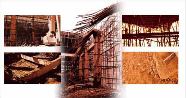 建筑处于碱性环境,频繁承受动荷载,促使结构表层腐蚀,强度疲劳破坏。