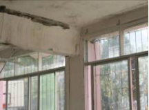 图4为与图3所示建筑一路相隔的另一4层框架结构,南北向2跨,东西向9跨。该框架结构内横墙采用实心砖填充墙,且数量较多,并嵌入框架中。外纵向维护墙虽也采用实心砖,但未嵌入框架中,地震中外闪掉落严重(图4b)。尽管如此,由于横向框架梁柱与实心砖填充墙基本形成框架约束砌体,横向填充墙有效参与结构受力,显著增强了结构横向的承载力,同时纵向跨数较多,且该建筑平面也比较简单、规则,故该建筑未发生如图3所示的1层倒塌震害。在震中近11度的高烈度区,其震害程度属于可接受。