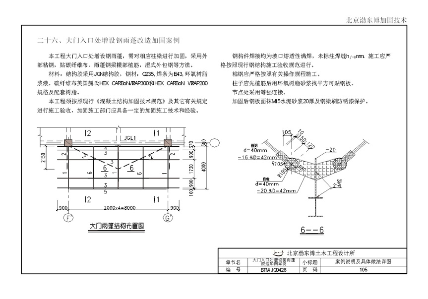 大门入口处增设钢雨蓬改造加固案例